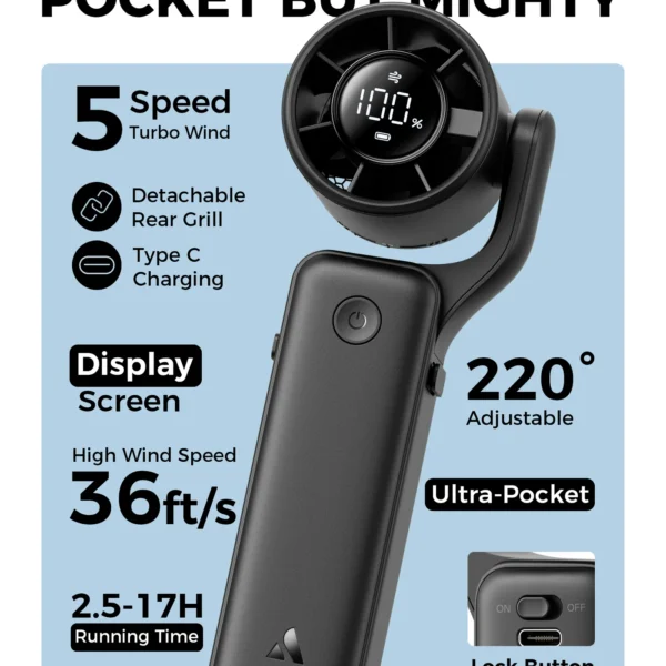Aecooly AirGimbal PF04 Powerful Turbo Air Handheld Fan – Portable Rechargeable Cooling Fan