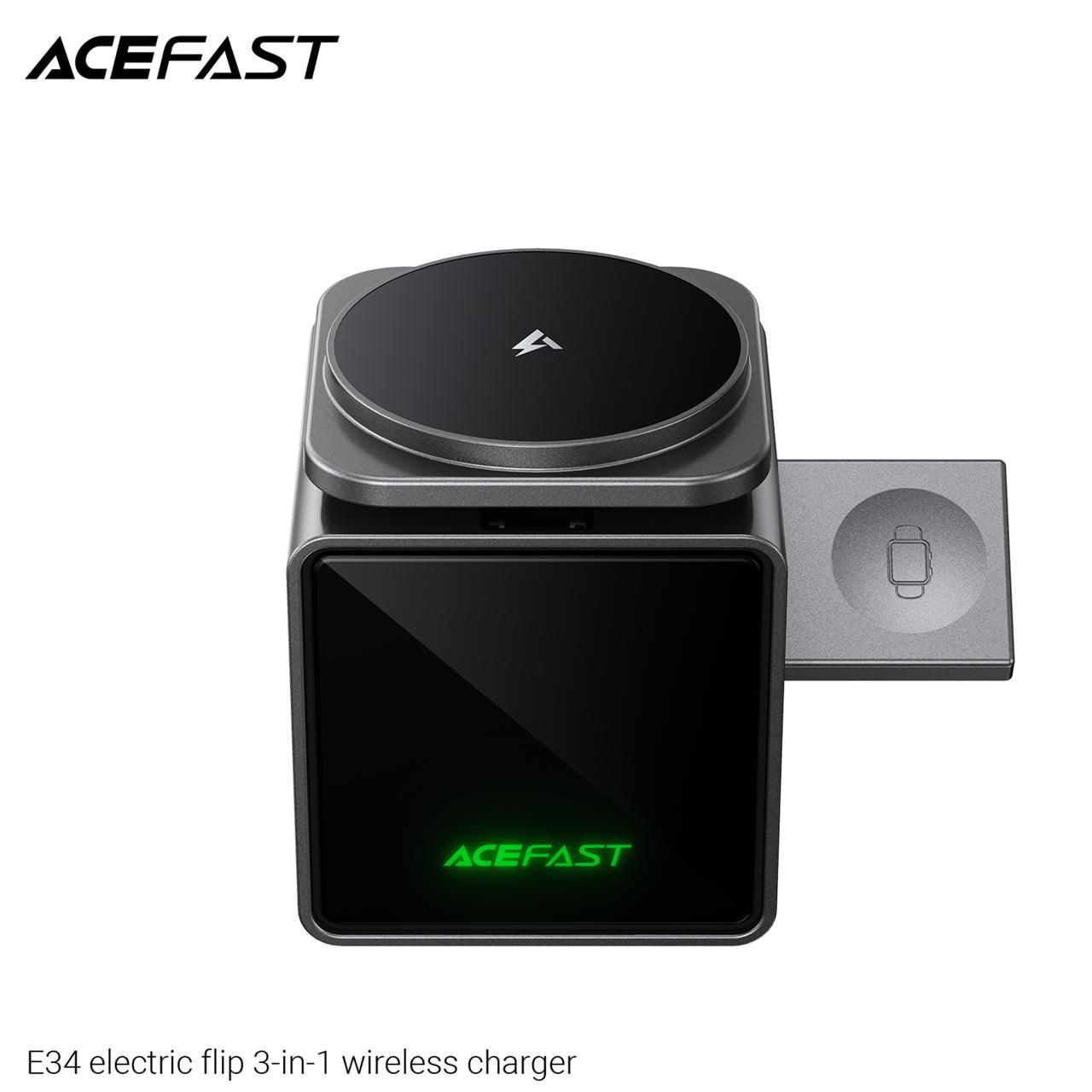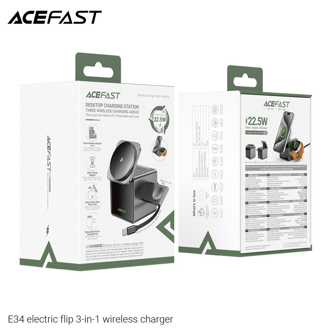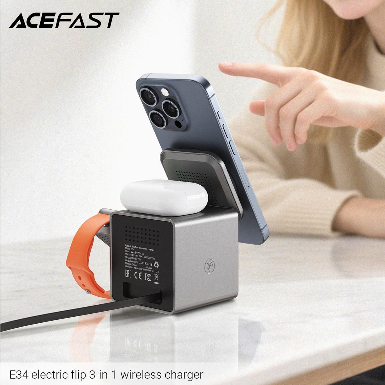 - The ACEFAST E34 3-in-1 Desktop Wireless Charging Holder is the perfect all-in-one charging solution for your smartphone, TWS earbuds, and smartwatch. Designed with premium materials and intelligent charging technology, it delivers efficient, safe, and fast wireless charging while keeping your desk organized and clutter-free.