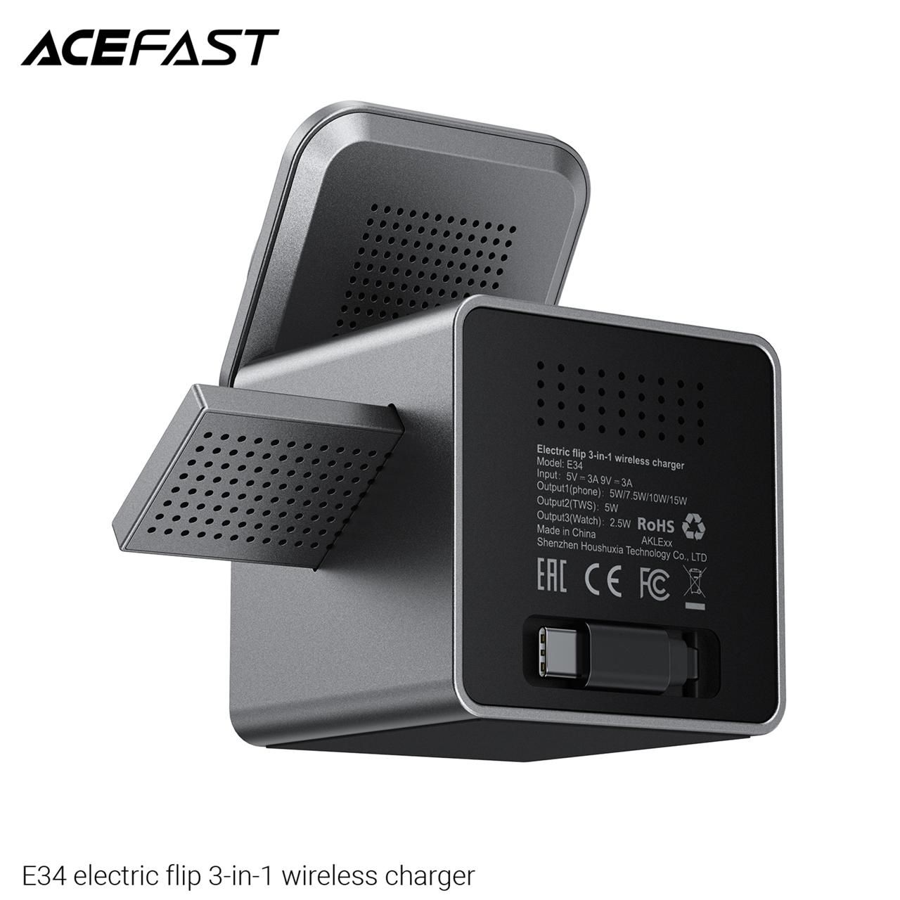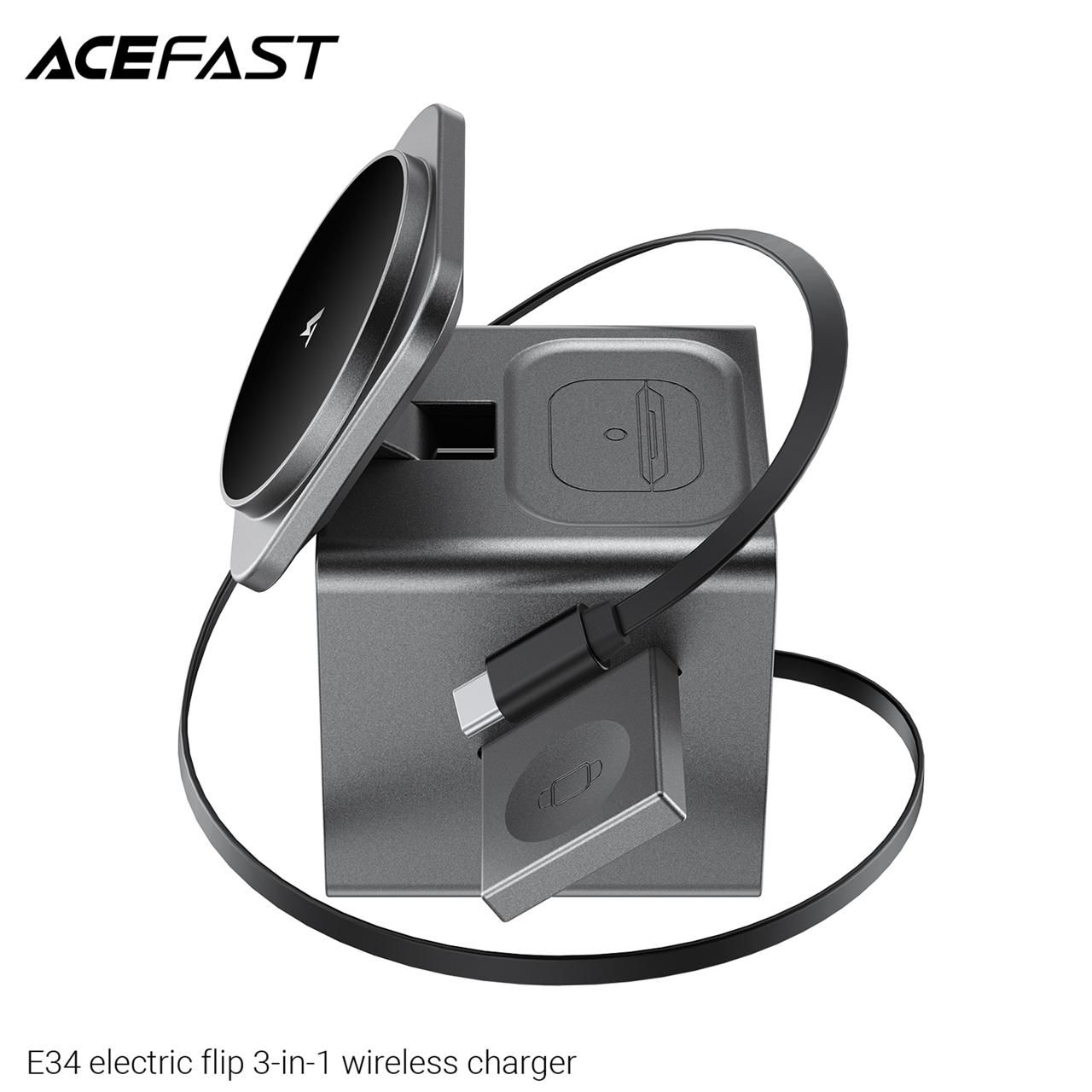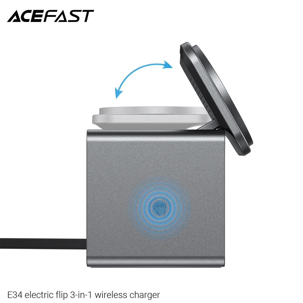 - The ACEFAST E34 3-in-1 Desktop Wireless Charging Holder is the perfect all-in-one charging solution for your smartphone, TWS earbuds, and smartwatch. Designed with premium materials and intelligent charging technology, it delivers efficient, safe, and fast wireless charging while keeping your desk organized and clutter-free.