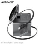 - Crafted from durable ABS + PC materials, the charger comes in an elegant metallic grey finish, adding a modern and stylish look to any workspace. The cooling vents help dissipate heat efficiently, ensuring safe and stable charging performance. Additionally, the ACEFASTE34 supports MagSafe-compatible devices, enabling magnetic alignment for a secure and stable charge.