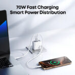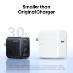 - 70W High-Power Charger: A perfect replacement for the Apple 70WUSB-C power adapter, while also compatible with 67W, 65W, and other devices. It supports a 65W + 5W combination, allowing you to charge a 65W laptop and a low-power device simultaneously. The new 45W + 25W power combination can simultaneously support Samsung’s 45W and 25W fast charging. It offers a maximum output of 70W with two ports and a maximum output of 70W with three ports.
