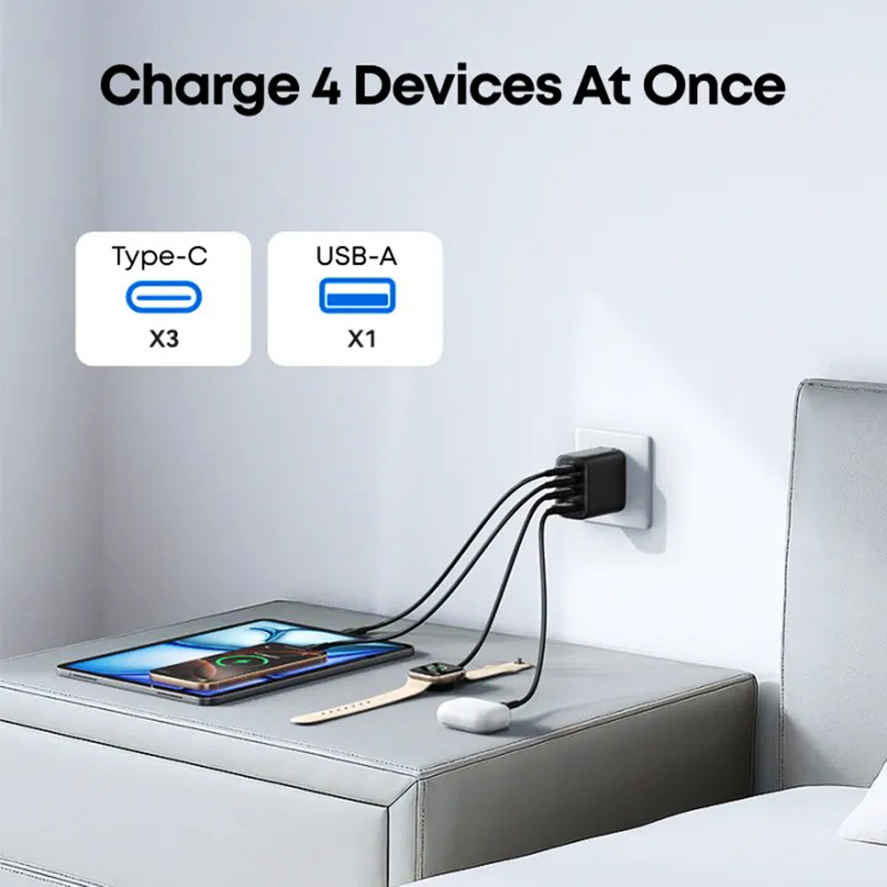 - High-Power 4-Port Charger: C1, C2, and C3 ports all support 70W, allowing you to charge four devices simultaneously. Wake up to fully charged phones, tablets, watches, and power banks.