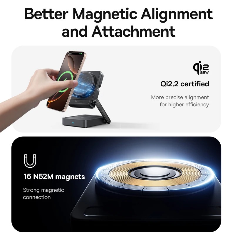 Baseus PicoGo AF21 3-in-1 Qi2.2 Wireless Charger, Magnetic Wireless Charger Stand with TEC Cooling, MagSafe-Compatible iPhone Charger for iPhone12-17 Series, AirPods, Apple Watch