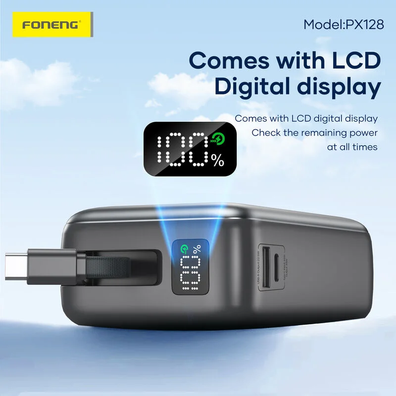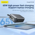 Foneng PX128 30000mAh 65W Power Bank with Built-in USB-C Cable – Fast Charging Portable Power Station for Laptops, Phones & Tablets