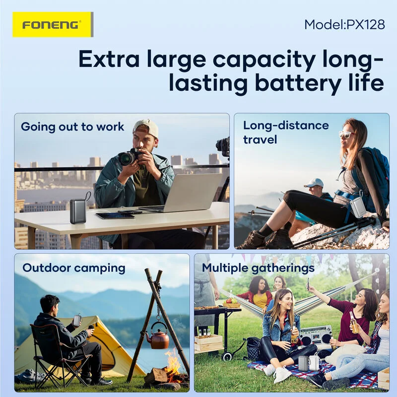 - Powerful 65W Fast Charging for Laptops and Devices: The Foneng PX128 Power Bank delivers up to 65W high-speed output, capable of charging laptops, tablets, and smartphones rapidly. Perfect for users who need fast, reliable power during work, travel, or outdoor activities.