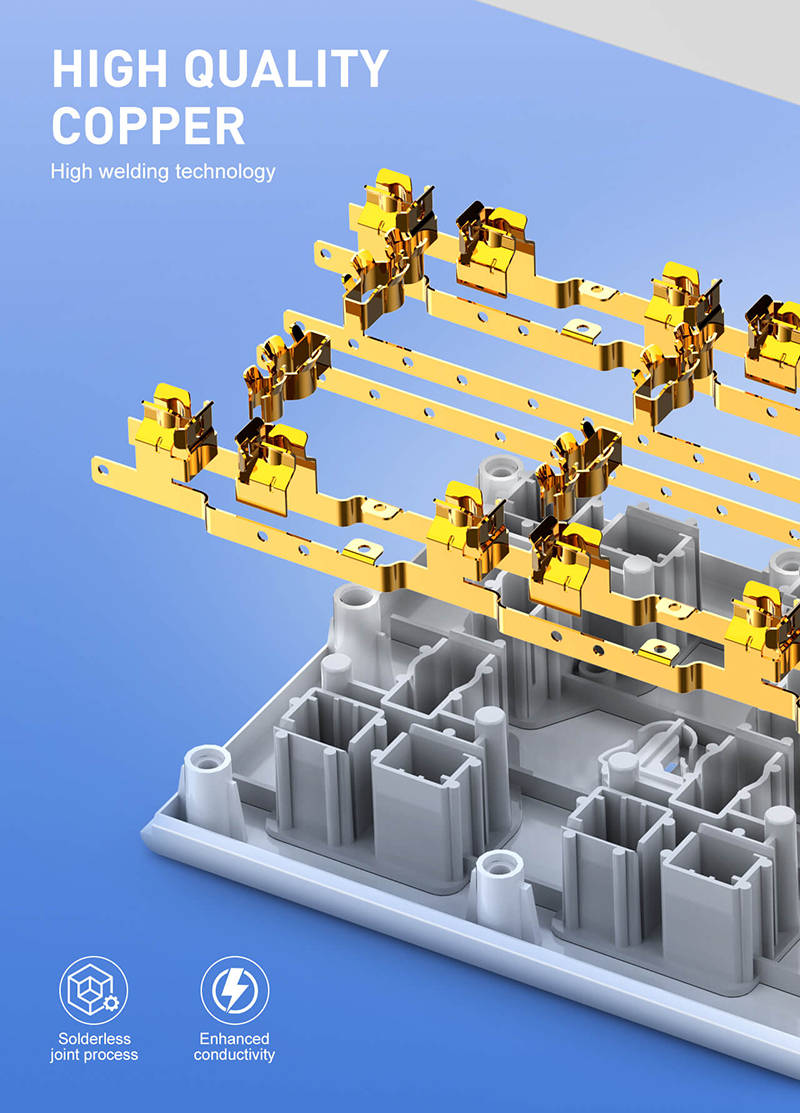 - All-Round Safety System: V-0 flame-retardant shell 75N child safety shutter and master power switch.