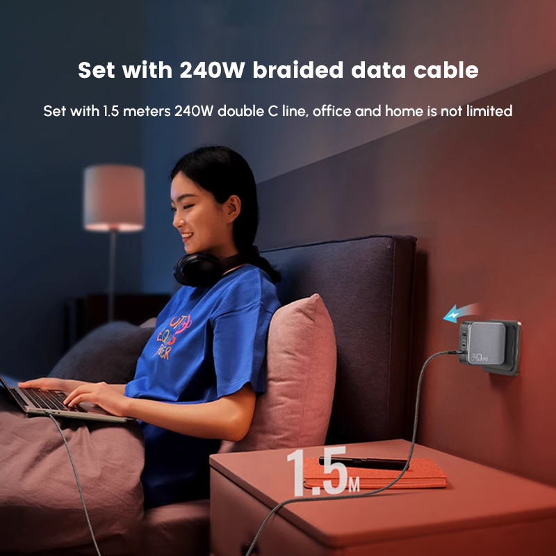 - Hyper Fast Charger: With the PD3.1 protocol, a single port pumps 140W to a MacBook Pro (140W only for MacBook Pro), charge to 56% in 30 minutes, must be used with USB C to Magsafe 3 cable