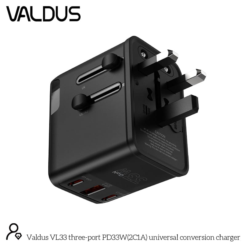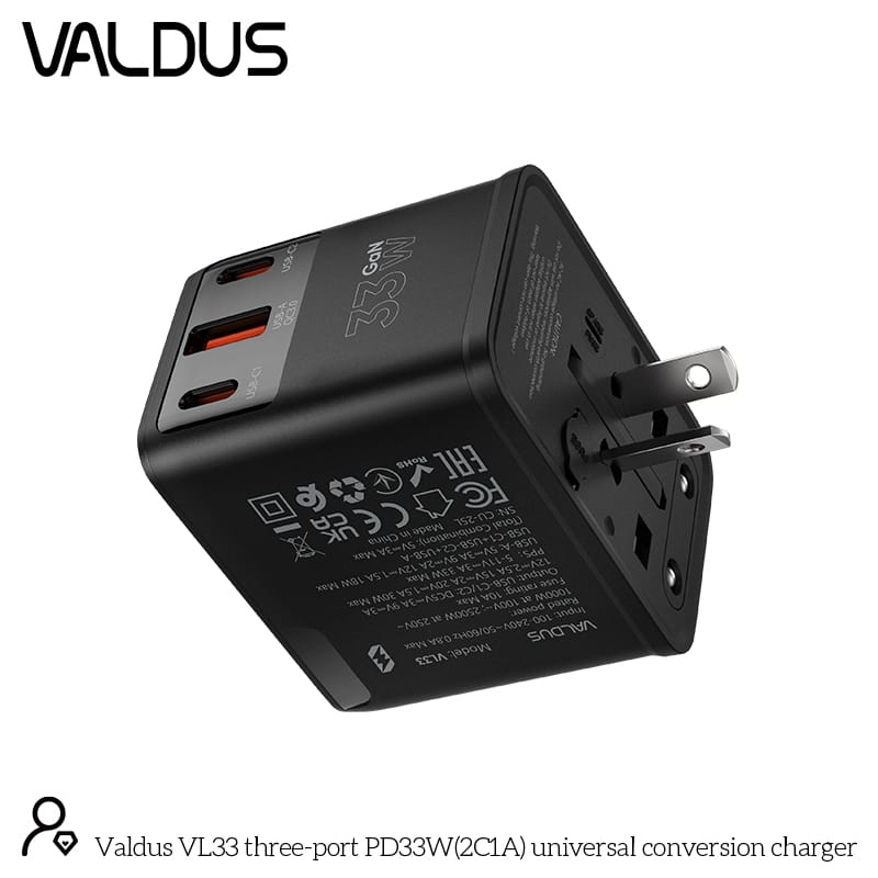 - VALDUS VL33 33W GaN Universal Travel Charger is a compact, high-efficiency fast charger designed for safe and reliable charging at home, in the office, or while traveling.