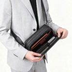 WiWU Master Genuine Leather Fingerprint Lock Crossbody Bag with Smart Anti-Theft Fingerprint Security, 3-in-1 Convertible Design, and Dual-Layer Organized Storage for Modern Professionals