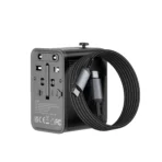 • Ultra-compact dual-AC Gallium Nitride (GaN) global charger with a built-in cable; universal for worldwide use, provides fast charging for multiple devices.
