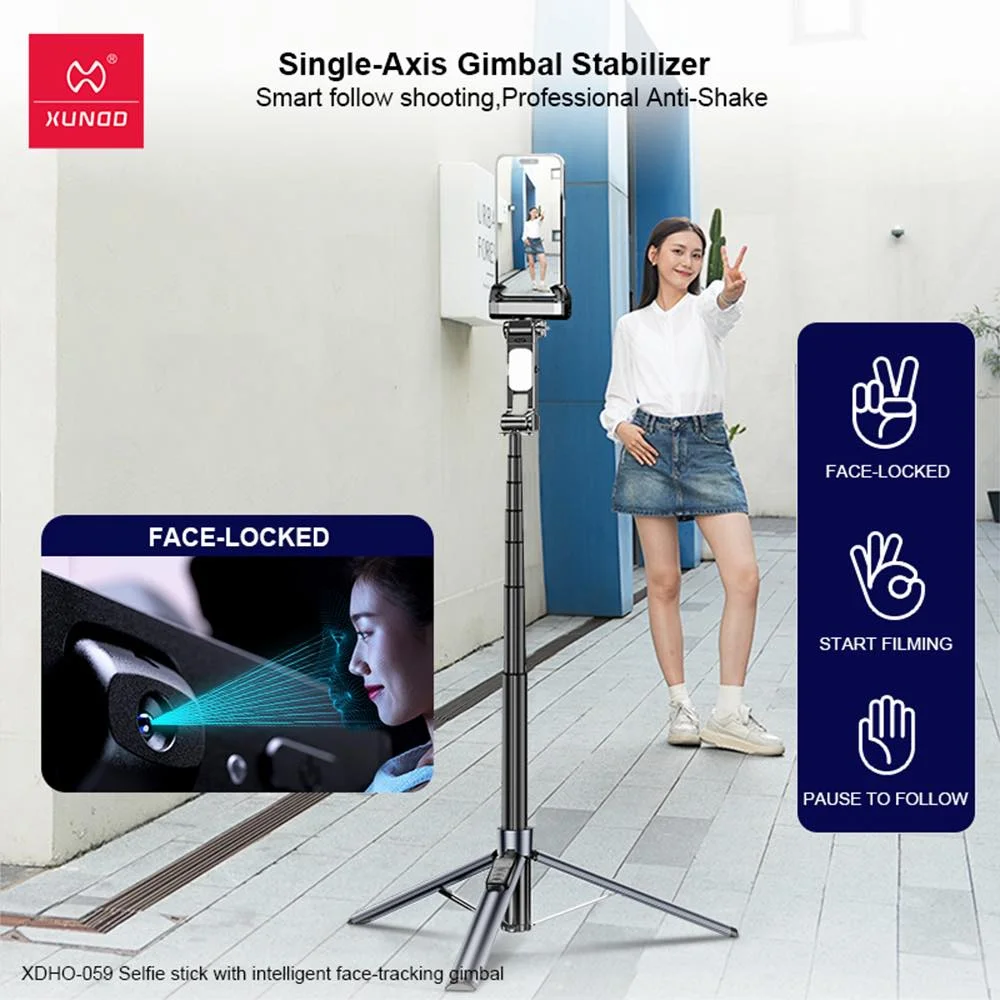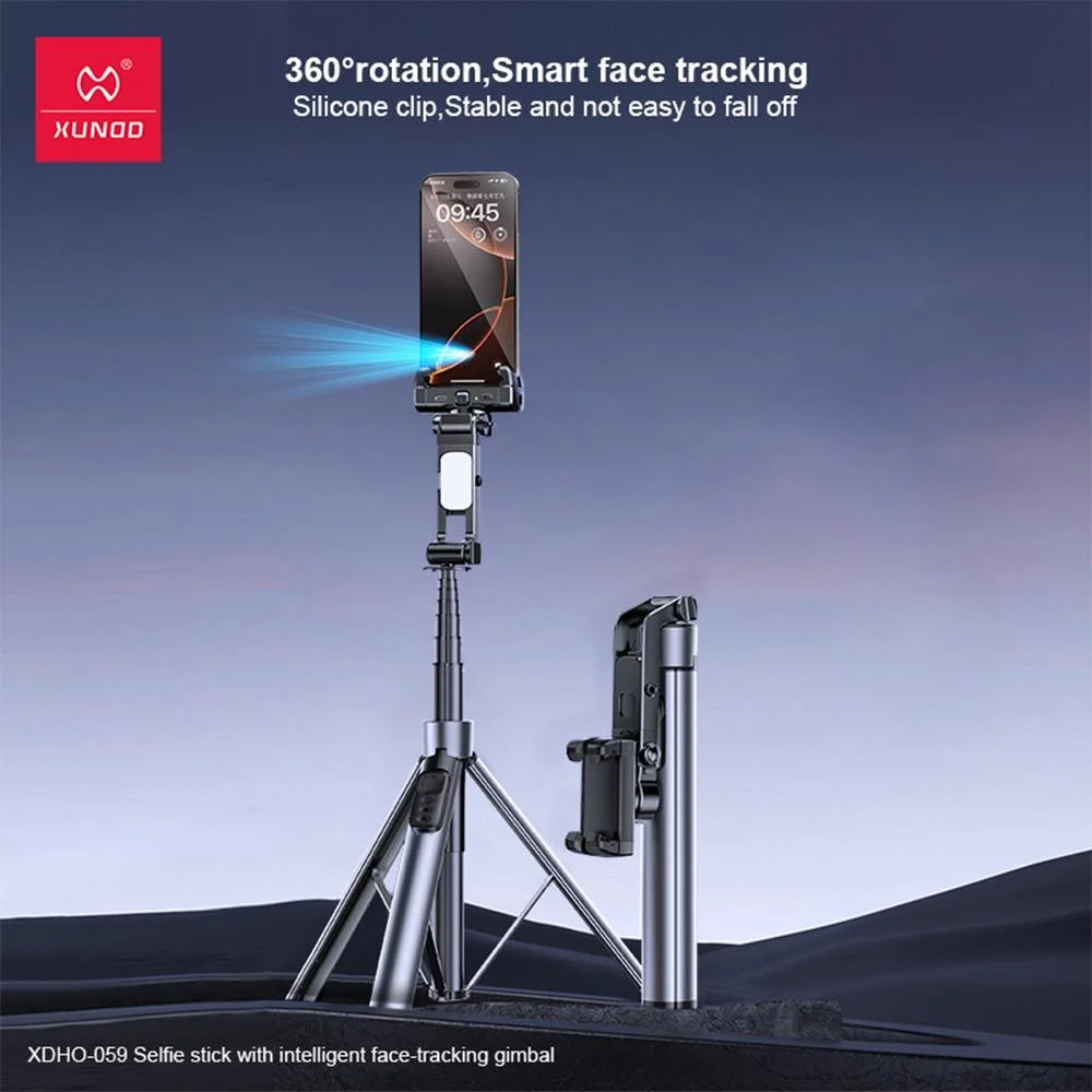 XUNDD XDHO-059 Smart Face-Tracking Gimbal Stabilizer Selfie Stick – AI Auto Face Tracking, 360° Rotation, Hands-Free Video Recording Tripod