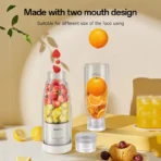 • Portable Design: Ideal for both home use and travel, this compact juicer is perfect for on-the-go nutrition.